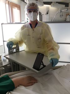 Leerlingen maken telefoonstandaards voor ziekenhuis