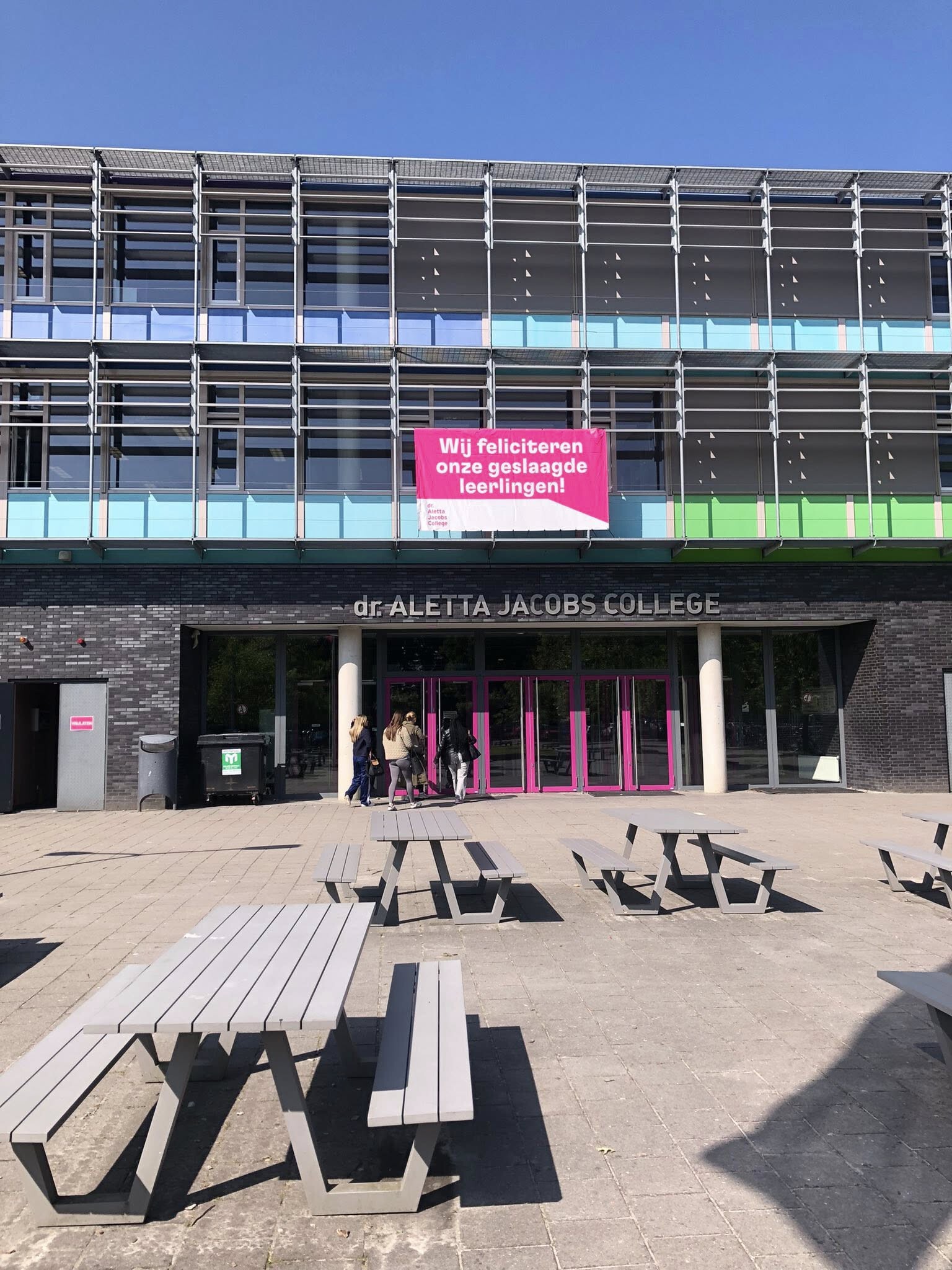 In de loop van donderdag 12 juni kleurde Midden-Groningen roze. Het was de dag dat de examenleerlingen in Nederland uitslag kregen van het examen eerste tijdvak. De geslaagde leerlingen van het dr. Aletta Jacobs College krijgen op de deze dag ook altijd een Aletta-wimpel om samen met de schooltas in de vlaggenmast te hangen.